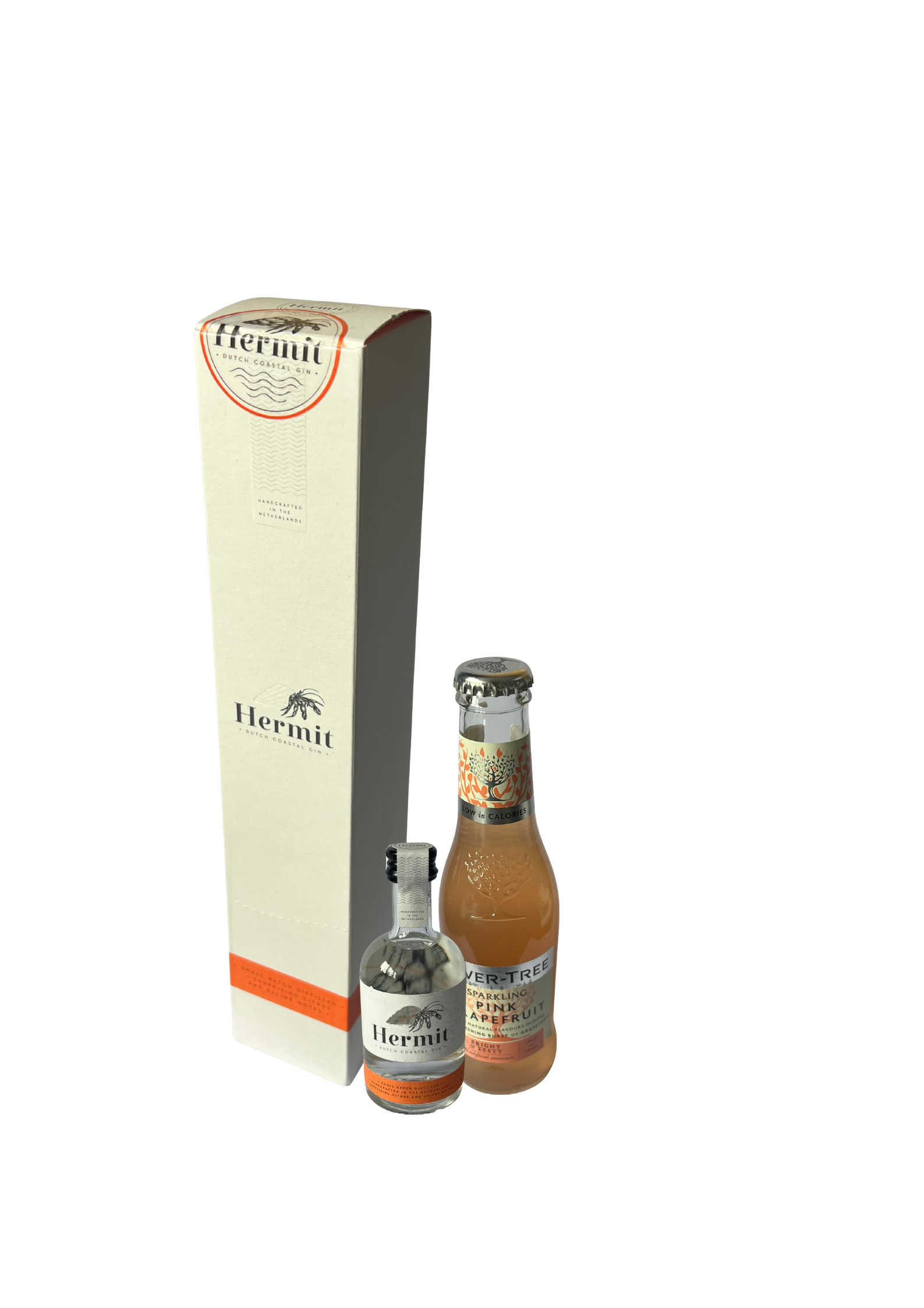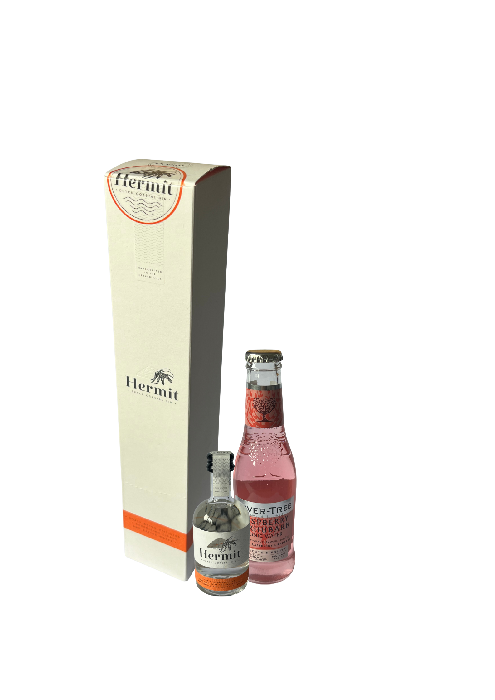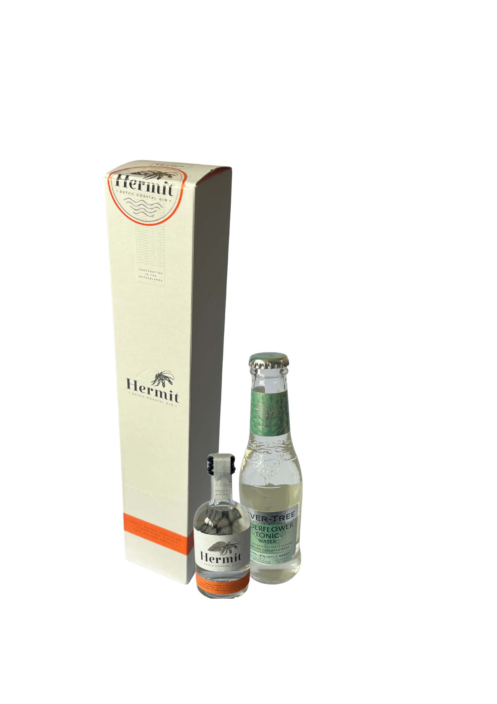 - Premium Gin: Hermit Dutch Coastal Gin, infused with botanicals and purified Oosterschelde water.